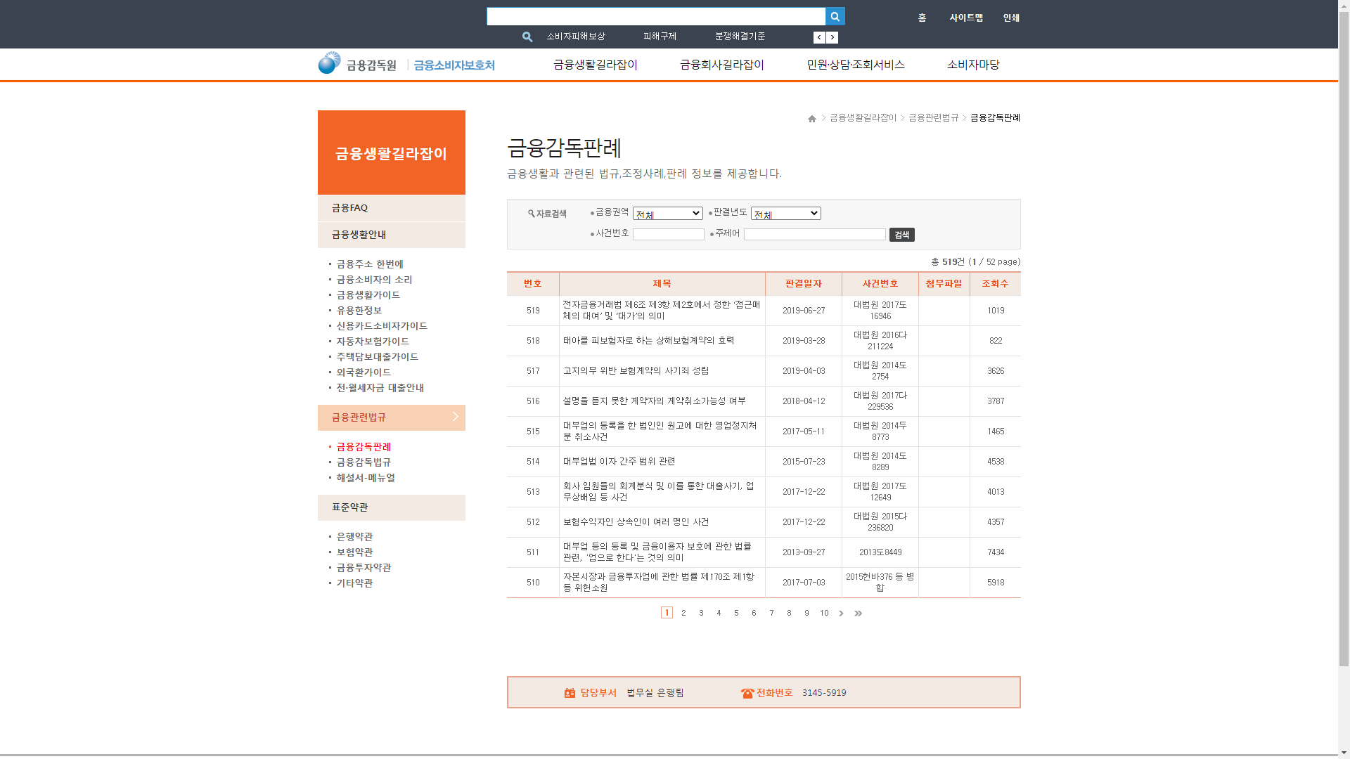 금융감독원에서 금융생활과 관련된 법규, 조정사례, 판례 정보를 제공합니다.