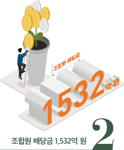 조합원에게 돌아간 출자 배당금은 다시 지역 내 자본으로 서민에게 돌아가 지역 경제를 활성화시키는 선순환 구조를 만듭니다.